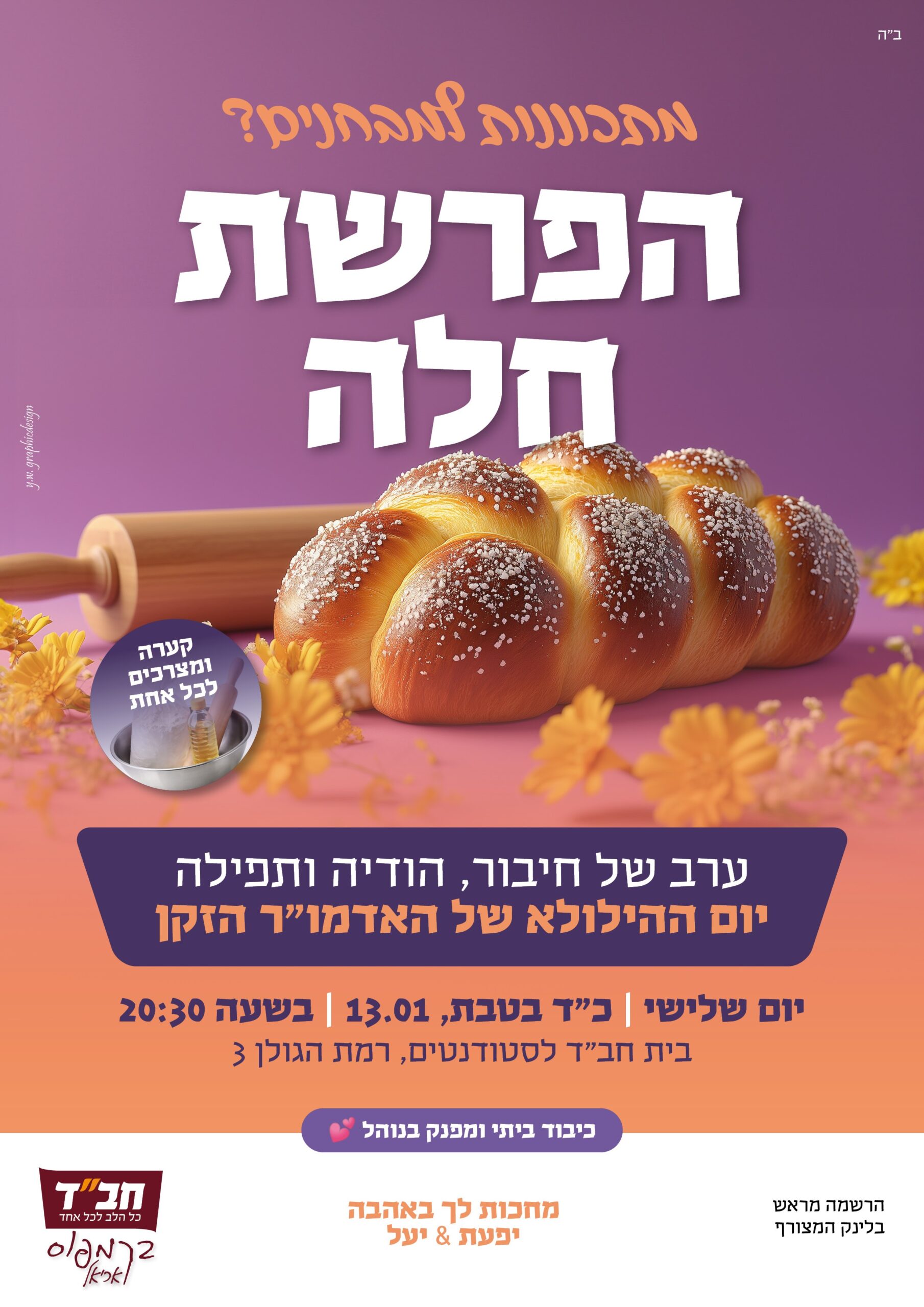 בבית חב"ד החדש לסטודנטים , רחוב רמת הגולן 3
